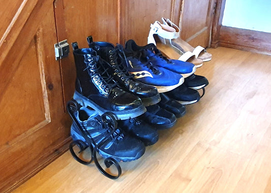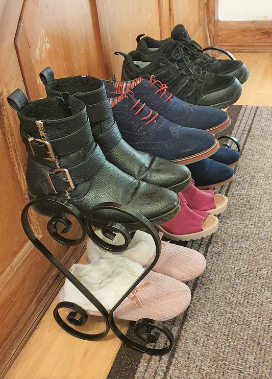 Wrought iron shoe rack. Heart-shaped. Handmade and crafted in the UK